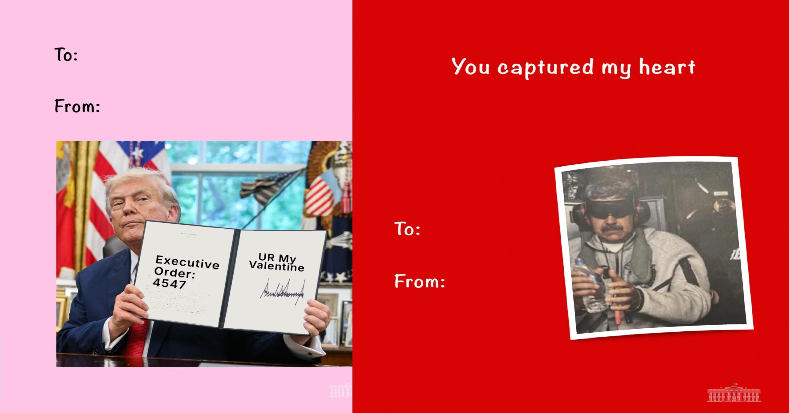 Valentine’s Day पर जहां दुनिया गुलाब और चॉकलेट में उलझी थी, वहीं White House ने कूटनीति को भी दिल के इमोजी में पैक कर दिया। ऑफिशियल सोशल मीडिया हैंडल से शेयर किए गए Valentine कार्ड्स ने यह साफ कर दिया कि अब राजनीति सिर्फ प्रेस कॉन्फ्रेंस तक सीमित नहीं अब “foreign policy” भी कभी-कभी “funny policy” बन सकती है। Maduro को ‘You Captured My Heart’ — इश्क या इशारा? सबसे ज्यादा चर्चा उस कार्ड की हुई जिसमें Nicolas Maduro के नाम के साथ लिखा था “You Captured My Heart.” यह लाइन…