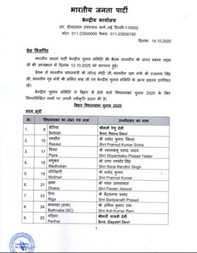 बिहार विधानसभा चुनाव 2025 का बिगुल तो पहले ही बज चुका था, अब बीजेपी ने भी अपनी पहली रणनीतिक चाल चल दी है। 71 उम्मीदवारों की पहली सूची जारी कर पार्टी ने साफ कर दिया है कि इस बार मैदान में वही उतरेंगे, जो या तो नामी हैं, या सियासी पक्के खिलाड़ी।