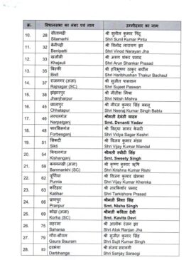सबसे चौंकाने वाला नाम उपमुख्यमंत्री सम्राट चौधरी का रहा, जिन्हें तारापुर सीट से टिकट देकर बीजेपी ने सियासी पिच को गरमा दिया है। माना जा रहा है कि ये फैसला जातीय समीकरणों और जमीनी पकड़ को देखते हुए लिया गया है।
