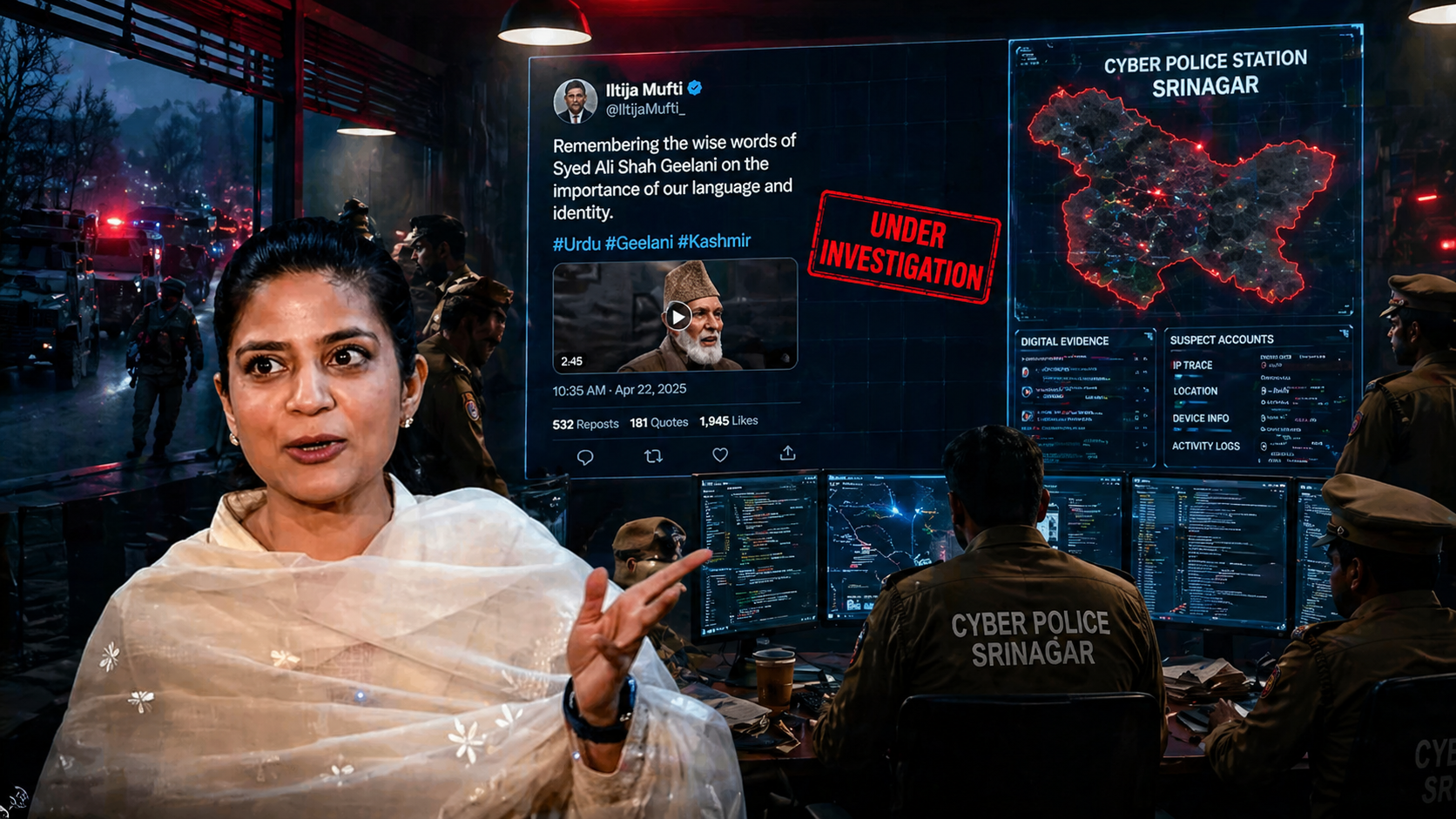 श्रीनगर की साइबर पुलिस ने PDP नेता Iltija Mufti और अन्य लोगों के खिलाफ एक सामान्य FIR दर्ज की है। आरोप है कि अलगाववाद से जुड़े कंटेंट को सोशल मीडिया पर प्रसारित किया गया, जिसमें दिवंगत अलगाववादी नेता Syed Ali Shah Geelani का वीडियो भी शामिल है। मामला अब कानूनी कार्रवाई से आगे बढ़कर राजनीतिक भूचाल बन चुका है।
