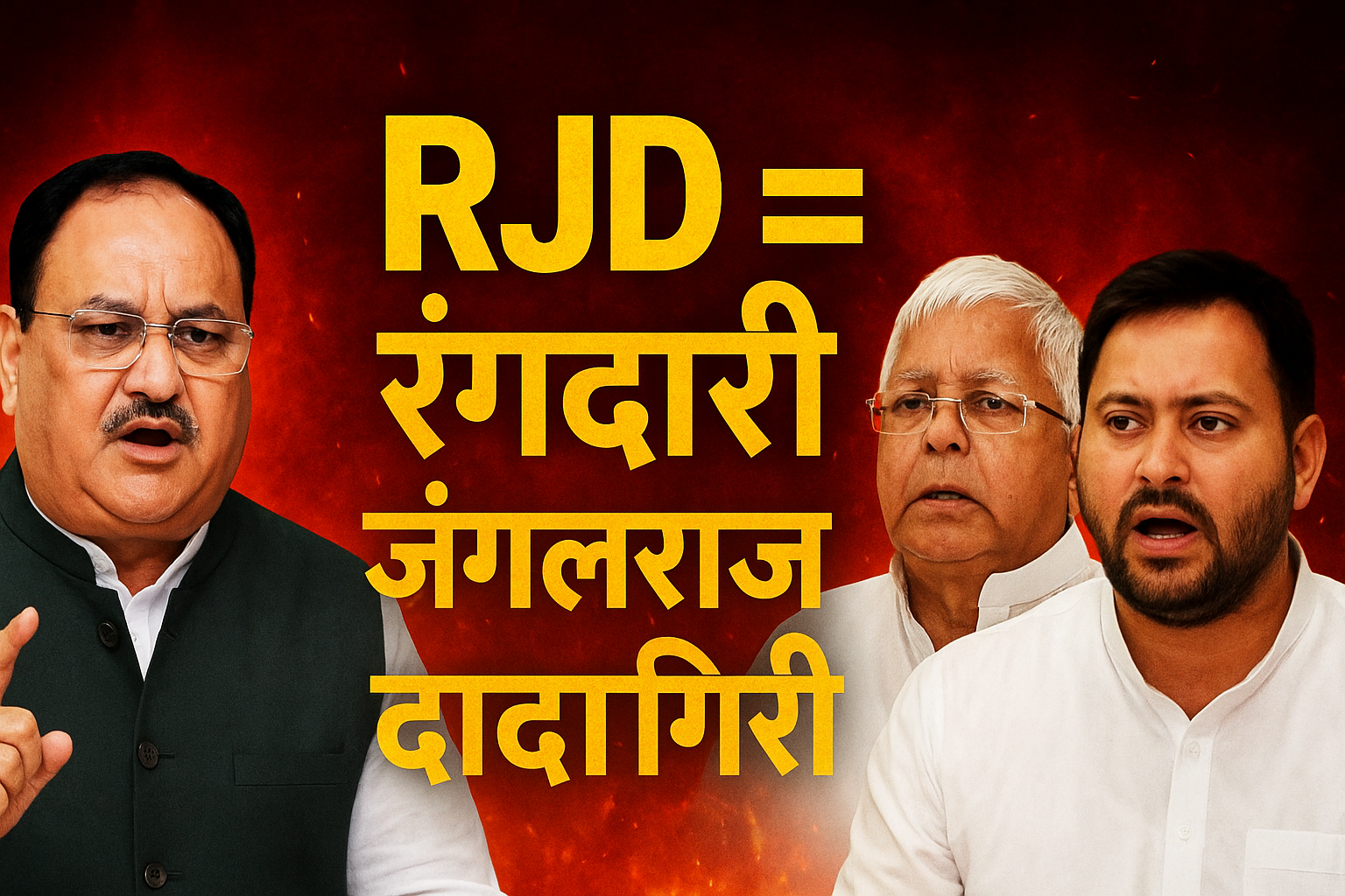 जेपी नड्डा बोले — “आरजेडी क्या है? R मतलब रंगदारी, J मतलब जंगलराज, D मतलब दादागीरी! और इन सबका मतलब है — जनता से दूरी।”