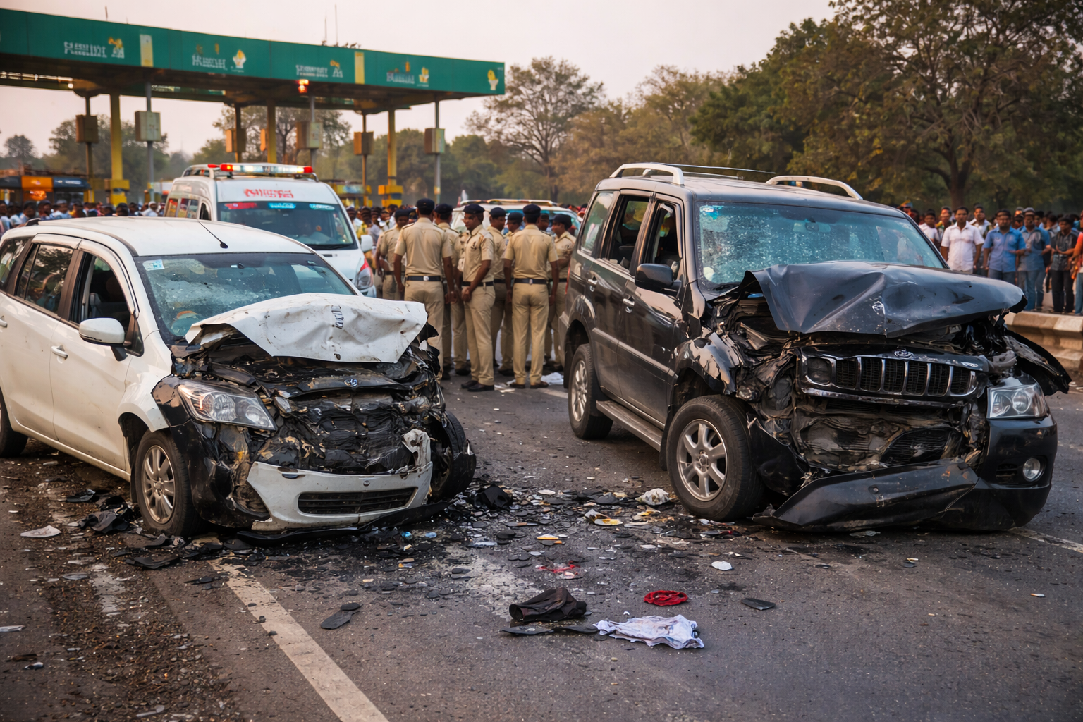 चाचड़गांव टोल प्लाजा के पास दो कारों—स्कॉर्पियो और अर्टिगा—की तेज टक्कर में 4 लोगों की मौके पर मौत हो गई, जबकि 6 लोग गंभीर रूप से घायल हो गए।