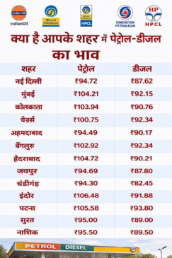 अगर आप अपने शहर का ताजा पेट्रोल-डीजल रेट जानना चाहते हैं, तो SMS के जरिए भी जानकारी मिल सकती है।