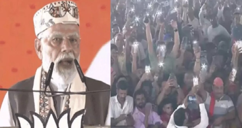 रैली में PM Modi ने जनता से मोबाइल की लाइट जलवाकर विपक्ष पर तंज कसा: