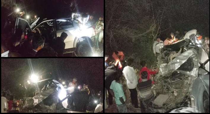 महाराष्ट्र के सोलापुर जिले के तुलजापुर में देवदर्शन के लिए निकले एक परिवार की खुशी कुछ ही मिनटों में मातम में बदल गई। देर रात बार्शी तहसील के पांगरी गांव में कार और ट्रक की जोरदार टक्कर में 5 लोगों की मौके पर ही मौत हो गई, जबकि चार दिन पहले शादी किए नवदंपति गंभीर रूप से घायल हो गए।