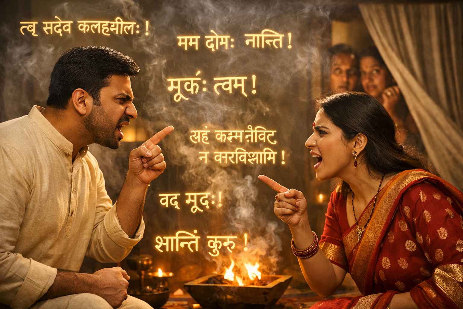 हर घर में दो चीजें कॉमन होती हैं—प्यार… और झगड़ा। लेकिन सोचिए, अगर वही झगड़ा संस्कृत में हो तो? आवाज़ वही, गुस्सा वही… लेकिन बाहर वालों को लगे— घर में हवन चल रहा है। यहीं से शुरू होती है शादीशुदा जीवन की सबसे ‘संस्कारी कॉमेडी’। “झगड़ा नहीं, संस्कारिक संवाद” आमतौर पर पति-पत्नी का झगड़ा मोहल्ले की breaking news बन जाता है। लेकिन अगर वही संवाद संस्कृत में हो— तो गुस्सा भी श्लोक जैसा लगेगा। “त्वं मां न शृणोषि!” “त्वमेव दोषी असि!” अब पड़ोसी confuse—ये बहस है या कोई वैदिक अनुष्ठान? “इमेज बिल्डिंग का…