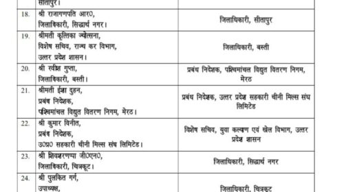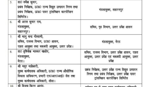 - आईएएस हिमांशु नागपाल → नगर आयुक्त, वाराणसी