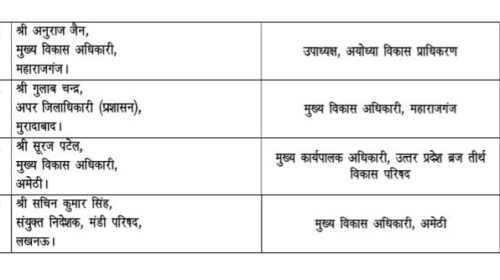 - आईएएस राजेश कुमार → मंडलायुक्त, मिर्जापुर