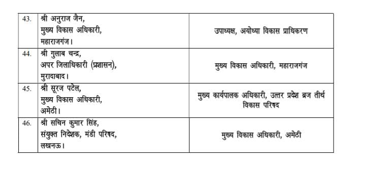 - आईएएस राजेश कुमार → मंडलायुक्त, मिर्जापुर